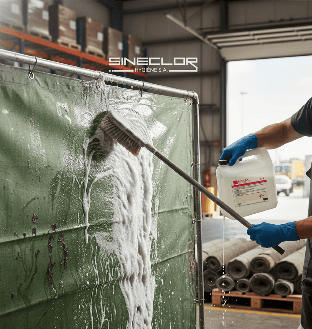 Grâce à sa formulation robuste, EMULGA est indispensable dans de multiples environnements industriels et commerciaux. Il est particulièrement indiqué pour le nettoyage en profondeur des sols de fabriques, garages et entrepôts, où l’accumulation d’huiles et de graisses est constante. De plus, il est le choix idéal pour l’entretien des bâches et pour le traitement des parquets qui nécessitent d’être dégraissés à fond avant un processus d’imprégnation.