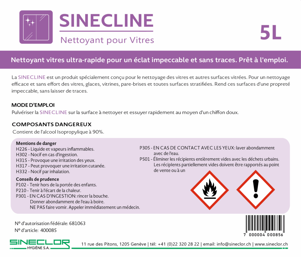 SINECLINE est la synthèse de l’efficacité, de la vitesse et de la perfection. Oubliez les traces frustrantes et les marques laissées par les nettoyants vitres courants. Si votre objectif est d’obtenir une propreté qui garantit un éclat parfait, de gagner du temps de travail et de projeter une image de netteté inégalée sur toute surface vitrée, SINECLINE est le choix professionnel et ultra-rapide qui est prêt à l’emploi et qui transformera votre routine de nettoyage.